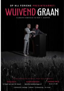 Wuivend graan is een absurde komedie. De regie is in handen van Anja Steegstra, die tevens ook het stuk heeft vertaald van het Nederlands naar het Fries.